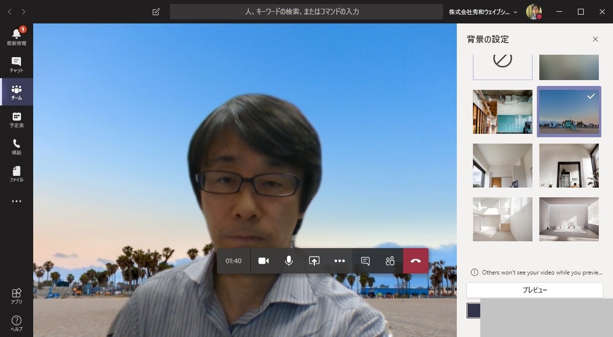 Microsoft Teams ならスペックの低いPCでも背景を変更できるのはありがたいです。
