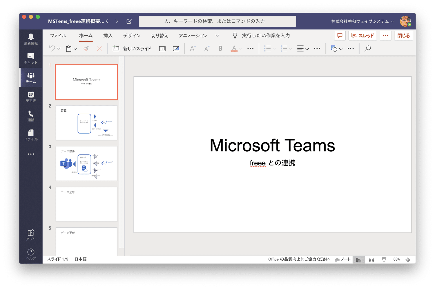 「スレッド」ボタンを押すと PowerPoint を閲覧・編集しながら会話ができます。