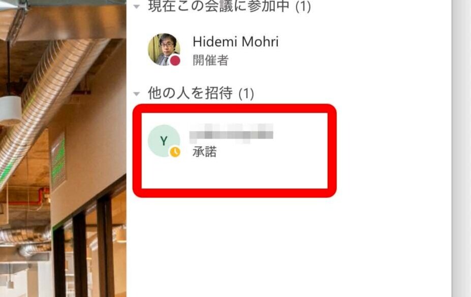 この画面では承諾になっていますから、このまま会議ができそうですね。