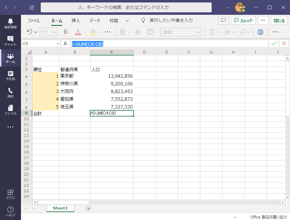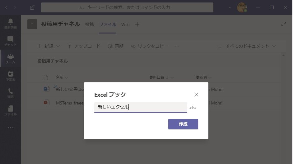 Teams でエクセル
