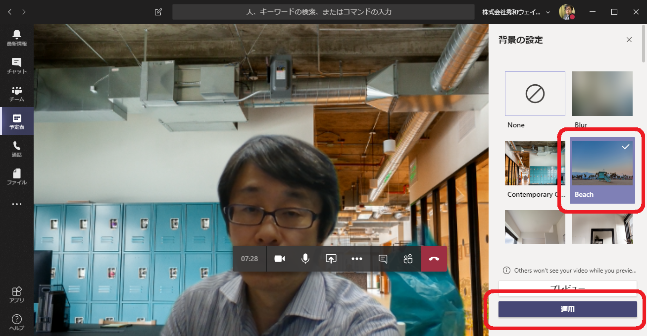 Microsoft Teams ならスペックの低いPCでも背景を変更できるのはありがたいです。